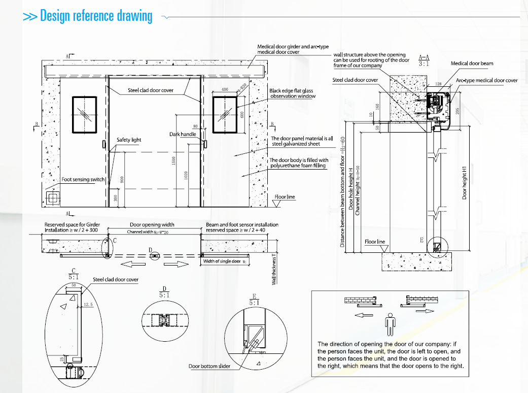 ติดตั้งสะดวกและไม่ยุ่งยาก โดยรางเลื่อนและบานประตูยึดติดกับกำแพงโดยตรง มีการซีลป้องกันการรั่วไหลของอากาศได้อย่างดี โดยการออกแบบที่เป็นลิขสิทธิ์ เฉพาะประตูนี้ ป้องกันการปนเปื้อนของอากาศขั้นสูงสุด โดยอยู่ในระดับมาตรฐานสุญญากาศ (GB/T7106-2008), the 8th level (the highest level).